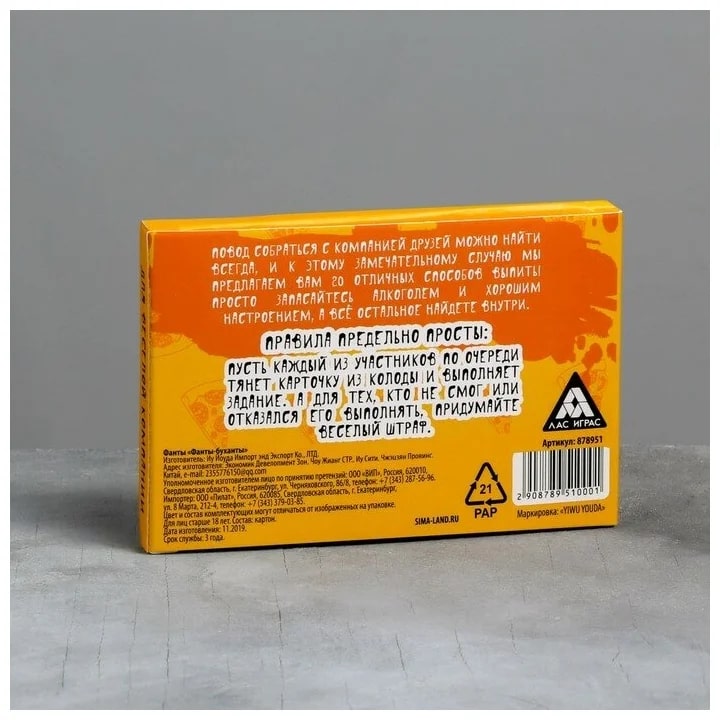 Купить игра для компании "фанты буханты" 20 карт от 100 руб. с доставкой до пункта выдачи в Чердыни. Интернет магазин ДекаМаркет. Оплата при получении.