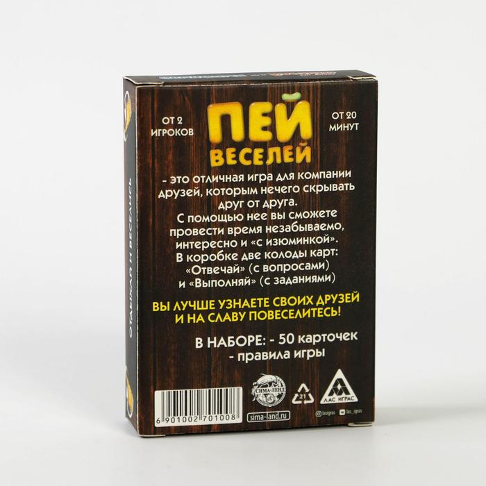 Купить игра для компании "пей веселей" 50 карт от 180 руб. с доставкой до пункта выдачи в Чердыни. Интернет магазин ДекаМаркет. Оплата при получении.
